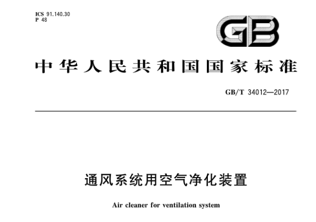 我國產(chǎn)品國家標準(GB/T 34012-2017)《通風系統(tǒng)用空氣凈化裝置》今年6月1日開始執(zhí)行