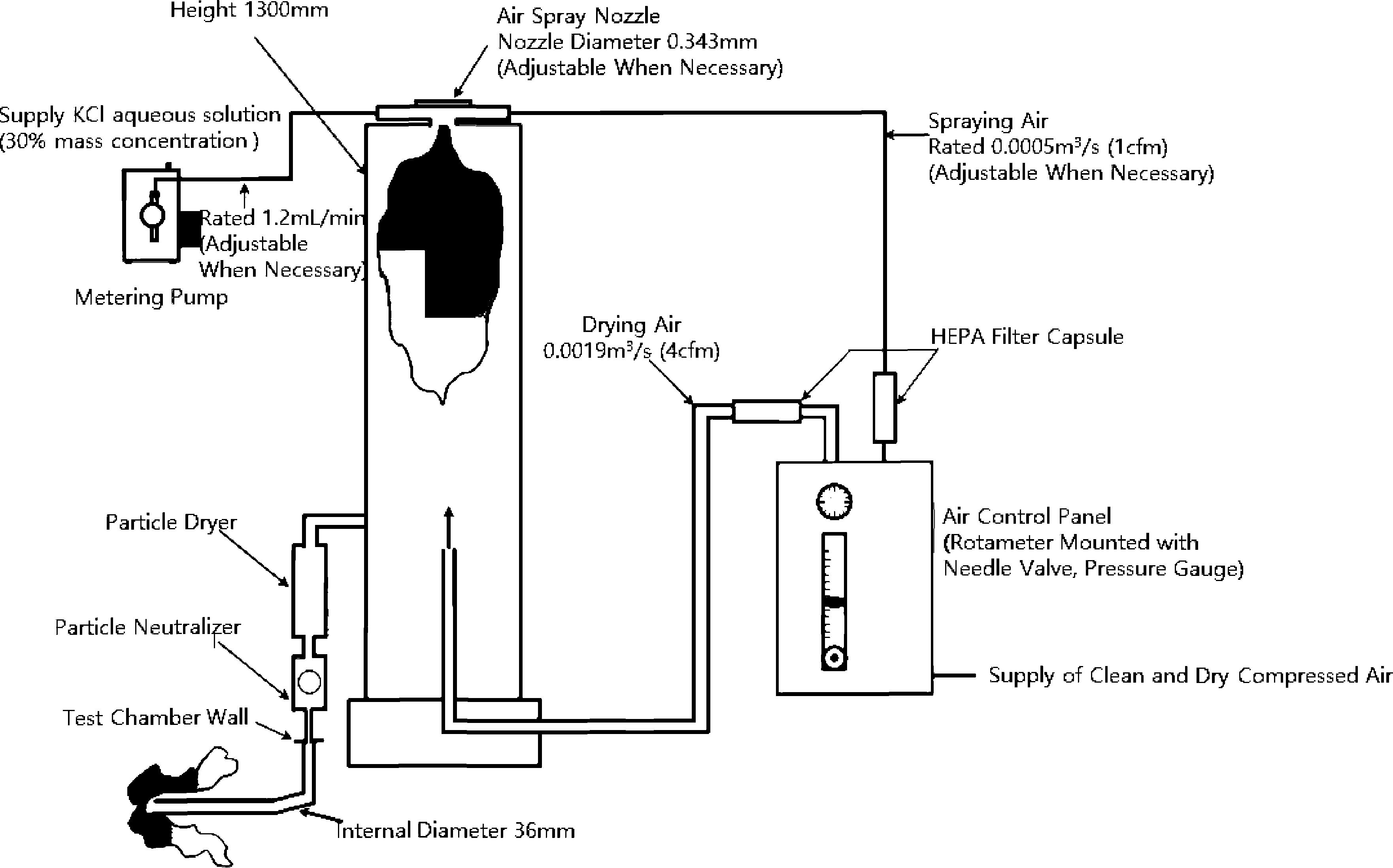 In the test chamber, a particle generator and a vortexer shall be installed in a way that test particles can have uniform