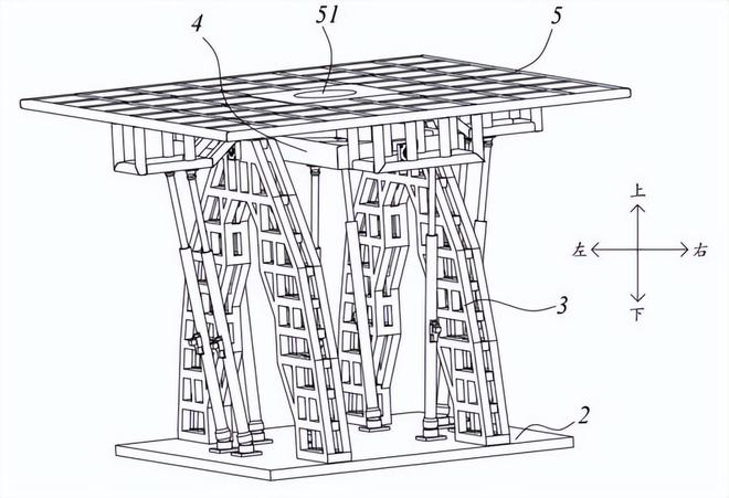 將常規(guī)搖擺臺(tái)中心支撐結(jié)構(gòu)改進(jìn)為兩側(cè)的支撐架形式,水平臺(tái)面采用中心開(kāi)孔結(jié)構(gòu)便于長(zhǎng)桿狀試件的安裝,以實(shí)現(xiàn)大型長(zhǎng)桿狀之間的搖擺試驗(yàn)的進(jìn)行。水平臺(tái)面與搖擺框架使用嵌套結(jié)構(gòu)實(shí)現(xiàn)水平臺(tái)面兩自由度的傾斜和搖擺動(dòng)作。