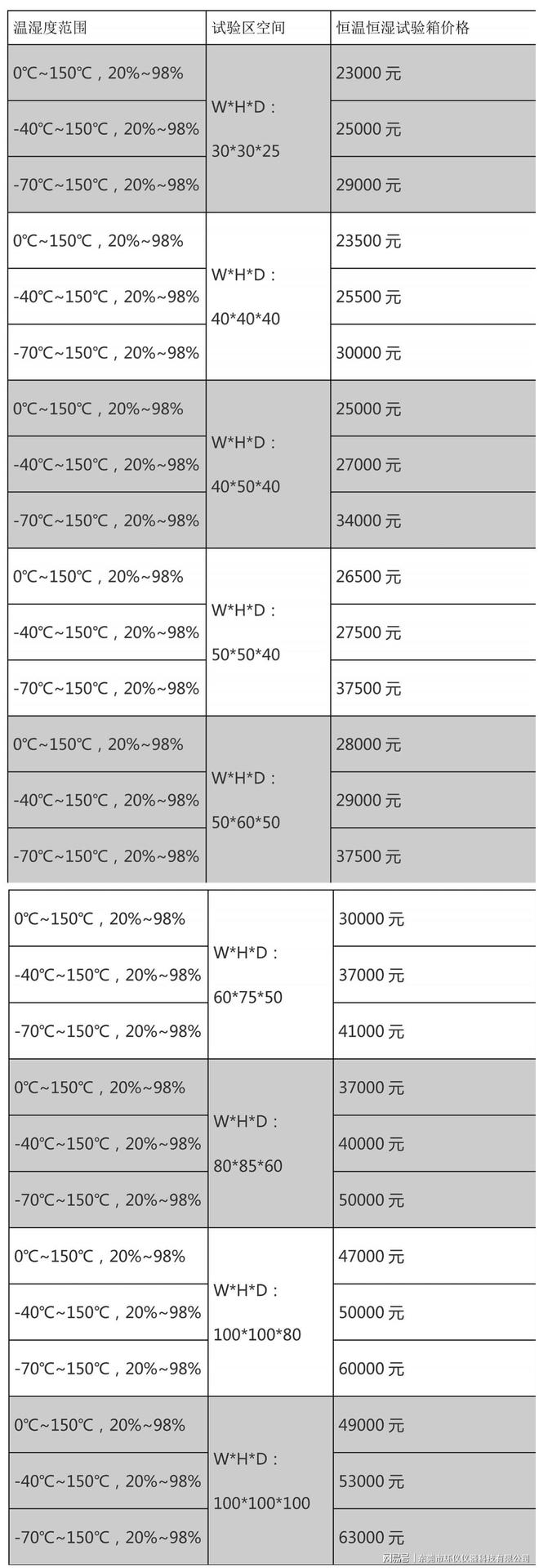 可程式恒溫恒濕試驗(yàn)箱報(bào)價(jià)表