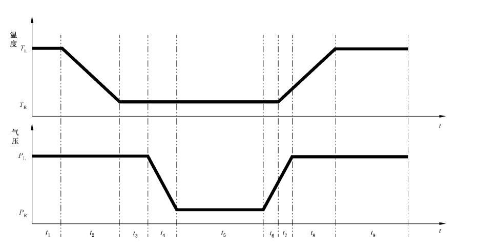 3.試驗(yàn)箱內(nèi)的氣壓降至要求值。氣壓的變化速率不應(yīng)超過15 kPa/min。溫度和氣壓應(yīng)按要求保持相應(yīng)的時(shí)間。然后氣壓應(yīng)恢復(fù)到正常值, 以不超過15 kPa/min 的速率。氣壓上升期間,不需要控制溫度。