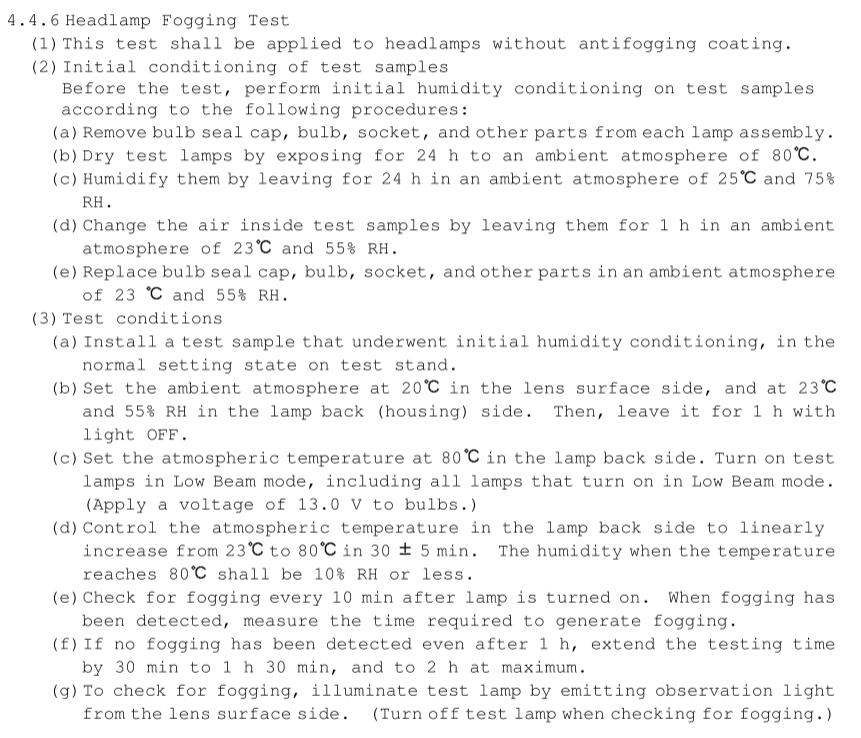 測(cè)試規(guī)定:本測(cè)試適用于未涂防霧涂層的前照燈。