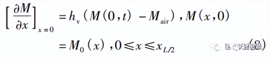 式中,Mair與M0分別為初始狀況下烘烤箱內(nèi)部與電芯中的水分含量;hv為電芯內(nèi)部的水分傳至烤箱環(huán)境中的傳遞系數(shù)。