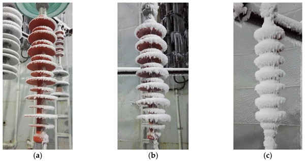 下圖展示了不同積雪厚度下的積雪復(fù)合絕緣子的外觀。積雪厚度分別為5毫米、10毫米和20毫米。