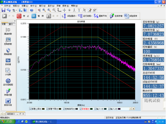 隨機(jī)控制采用傳遞函數(shù)均衡方法,根據(jù)用戶自定義的功率譜圖(通過(guò)目標(biāo)譜編輯器指定),實(shí)現(xiàn)連續(xù)輸出高斯隨機(jī)信號(hào)。該系統(tǒng)能夠快速執(zhí)行實(shí)時(shí)、精確的多通道閉環(huán)控制,內(nèi)置自適應(yīng)控制算法能夠迅速響應(yīng)系統(tǒng)的非線性、共振頻率以及載荷變化。