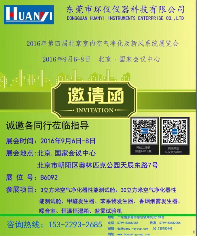 東莞市環(huán)儀儀器于9月6日~8日在北京國家會議中心參加空氣凈化及新風系統(tǒng)展
