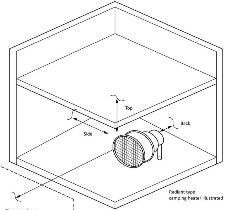 取暖爐應(yīng)放置在部分外殼中,典型的防火墻角,在取暖爐指定的最小邊和頂部間隙處。應(yīng)從