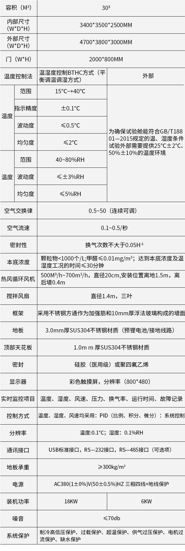 環(huán)境測試艙 內(nèi)部尺寸 |