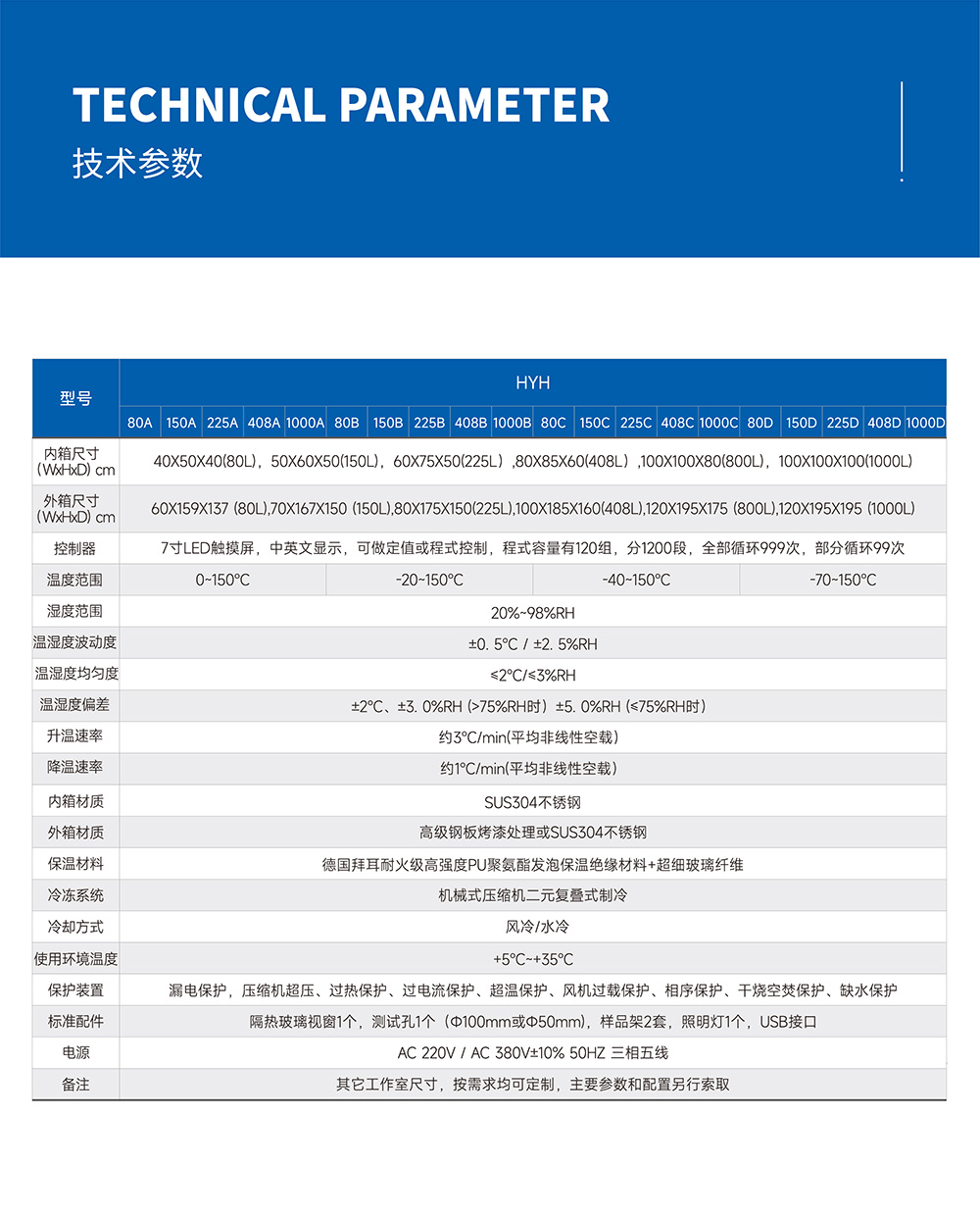 最高試驗(yàn)溫度:150℃;最低試驗(yàn)溫度 A型0℃  B型-20℃?  C型-40℃?  D型-70℃