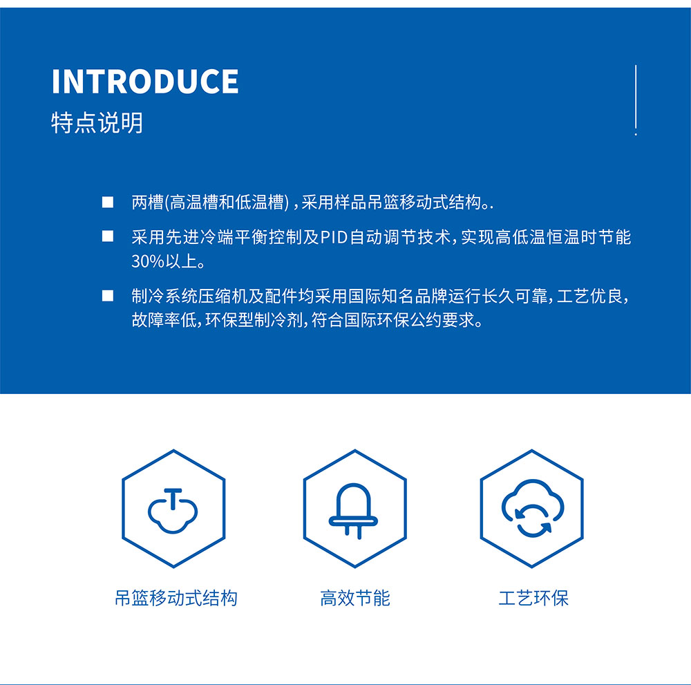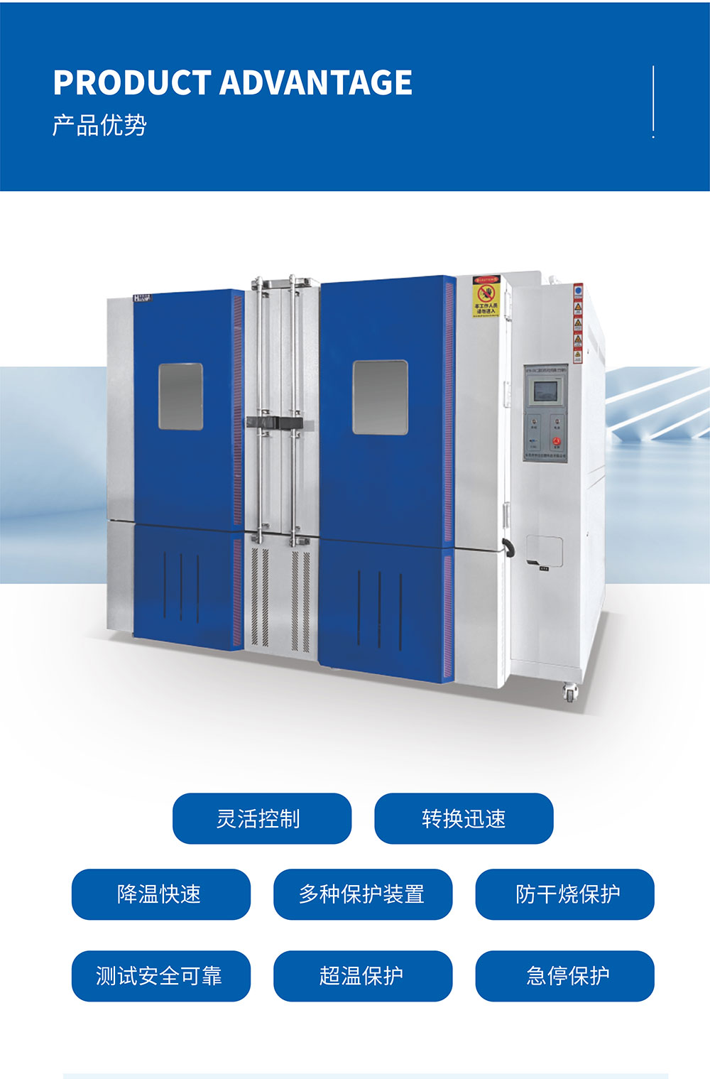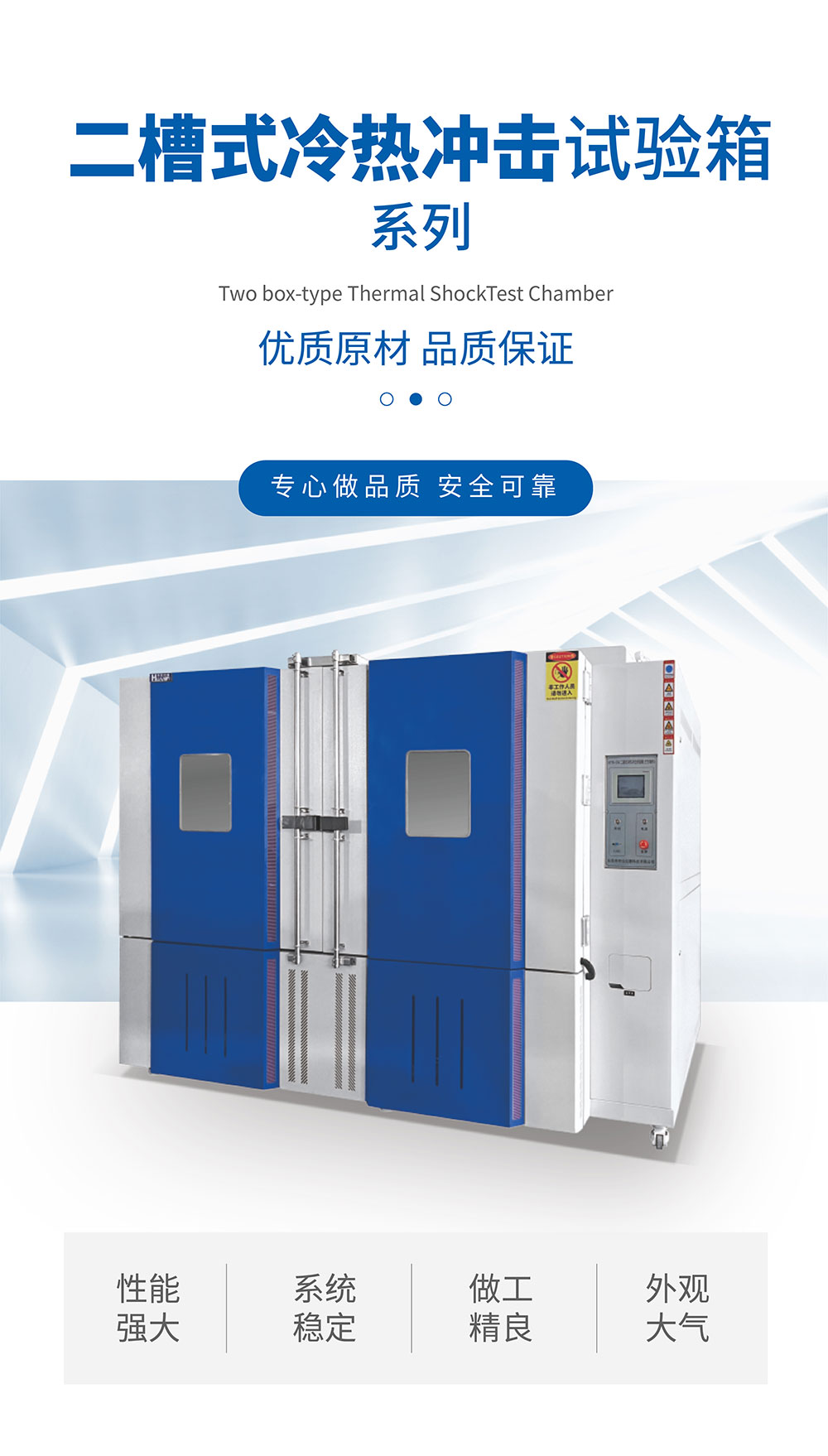 二箱式?冷熱沖擊箱用于測(cè)試零部件承受溫度迅速變化之耐力,即適用于質(zhì)量控制的實(shí)驗(yàn)室又可滿(mǎn)足生產(chǎn)過(guò)程中篩選商用和軍用產(chǎn)品。?