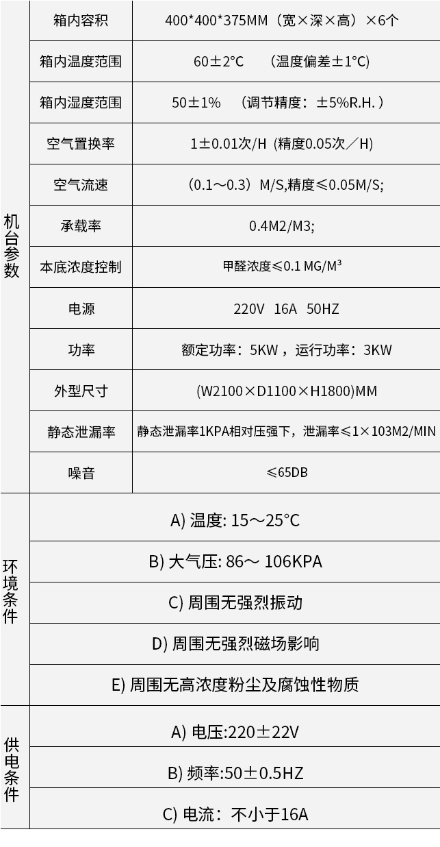 | 機(jī) 臺(tái) 參 數(shù) | 箱內(nèi)容積 | 400*400*375MM(寬×深×高)×6個(gè) |