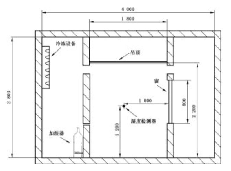 冷凍室體積應(yīng)在30 m³~40 m³之間、長(zhǎng)在3 m~4 m之間、寬在3 m~4 m之間和高在2.4 m~2.6 m之間。試驗(yàn)室為模擬標(biāo)準(zhǔn)浴室﹐長(zhǎng)1.8 m,寬 1.8 m,高2.2 m。