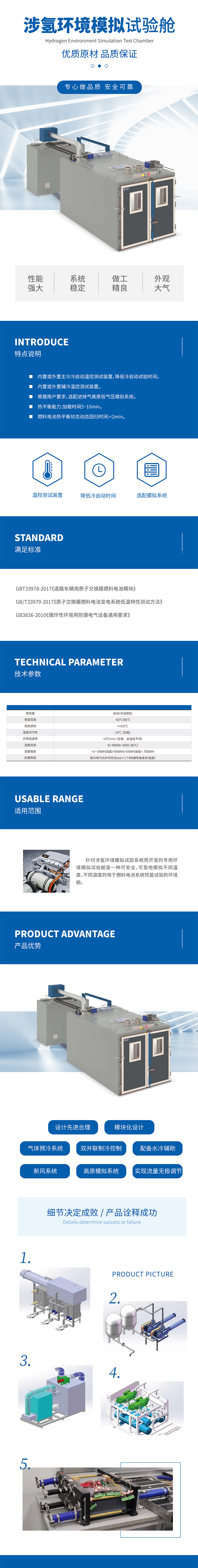 產(chǎn)品簡(jiǎn)介: 涉氫環(huán)境艙采用功能模塊化設(shè)計(jì)、防爆防靜電、滿足相關(guān)試驗(yàn)標(biāo)準(zhǔn),產(chǎn)品具有高靠性,綜合式安全預(yù)警特點(diǎn),適用于電堆及燃料電池發(fā)動(dòng)機(jī)系統(tǒng)測(cè)試。適用功率最大為150KW燃料電池系統(tǒng),低溫試驗(yàn)(存儲(chǔ)、起動(dòng)、性能),高溫試驗(yàn)(存儲(chǔ)、起動(dòng)、性能),濕熱試驗(yàn)(高溫濕熱)。訂購(gòu)熱線:0769-83482055